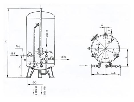 石英砂過濾器(又稱機械過濾器、砂過濾器等)是將需過濾的水經泵升壓后(約0.6MPa)通過濾層達到過濾目的,所以又稱壓力式過濾器。